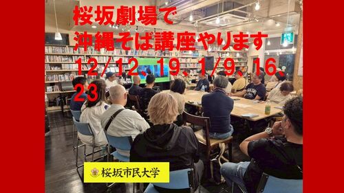 ども、さんぺいです。12月12日(金)から、桜坂劇場にて「沖縄そば史ゆんたく講座」を行うことになりました。12月12日から1月23日まで、毎週金曜日開催で、全5回、単発での受講も可能です。講座と言っても堅苦しいものではなく、沖縄そばオフ会…