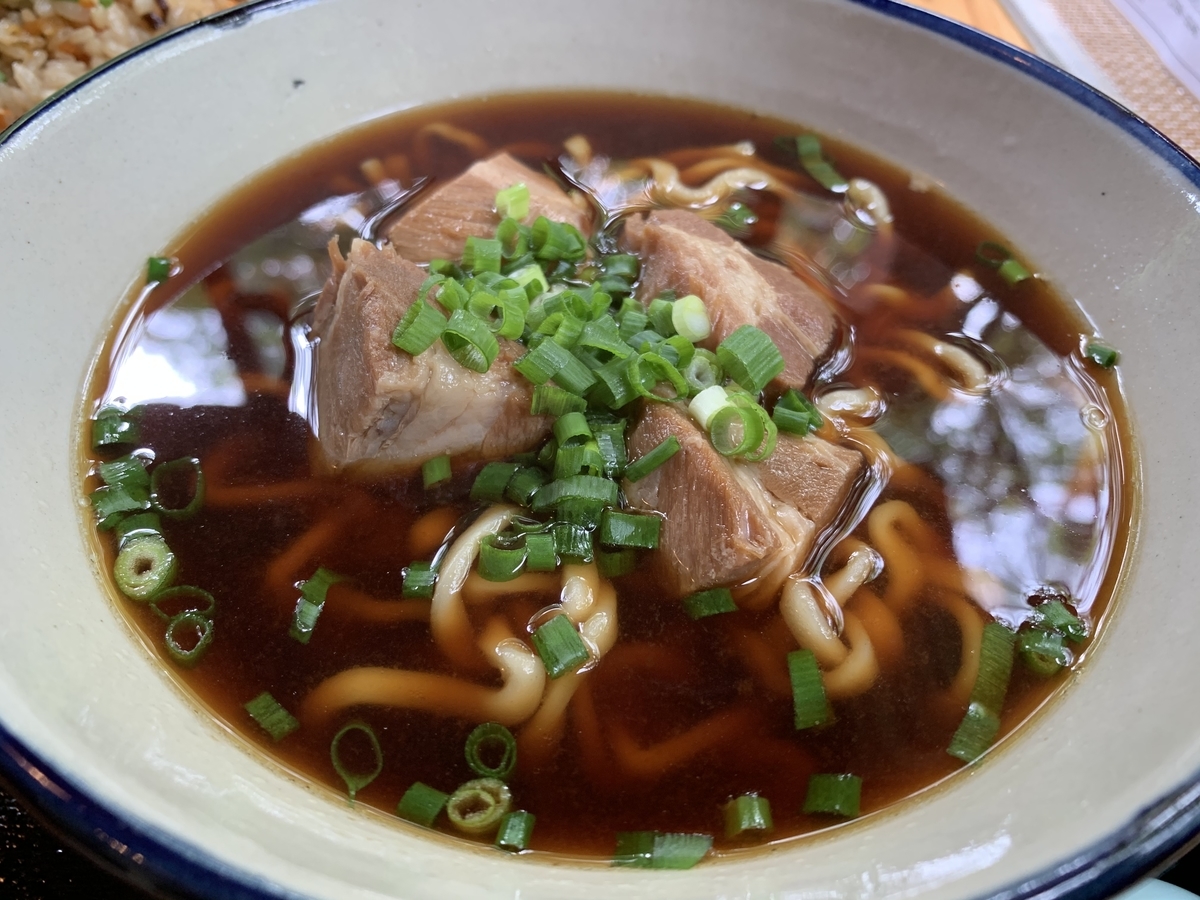 沖縄そばというと塩を思い浮かべますが、醤油を効かせたスープも新鮮な美味しさがありますね。