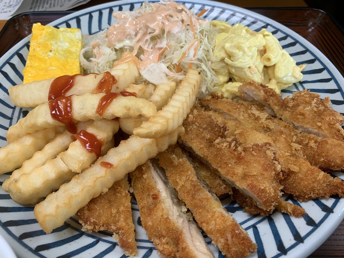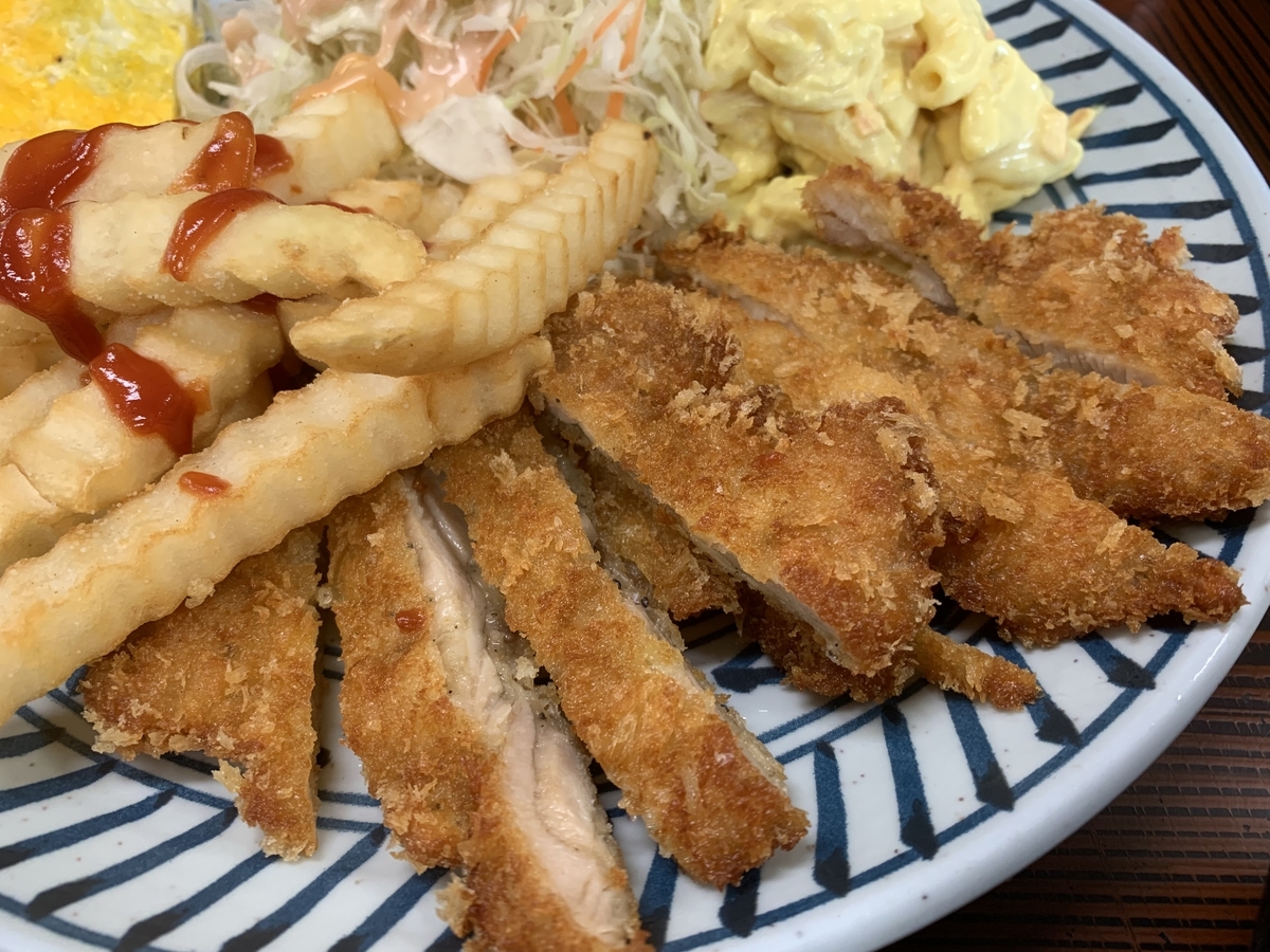 『あやぐ食堂』安定のボリュームで、しっかり食べ応えのあるチキンカツです。