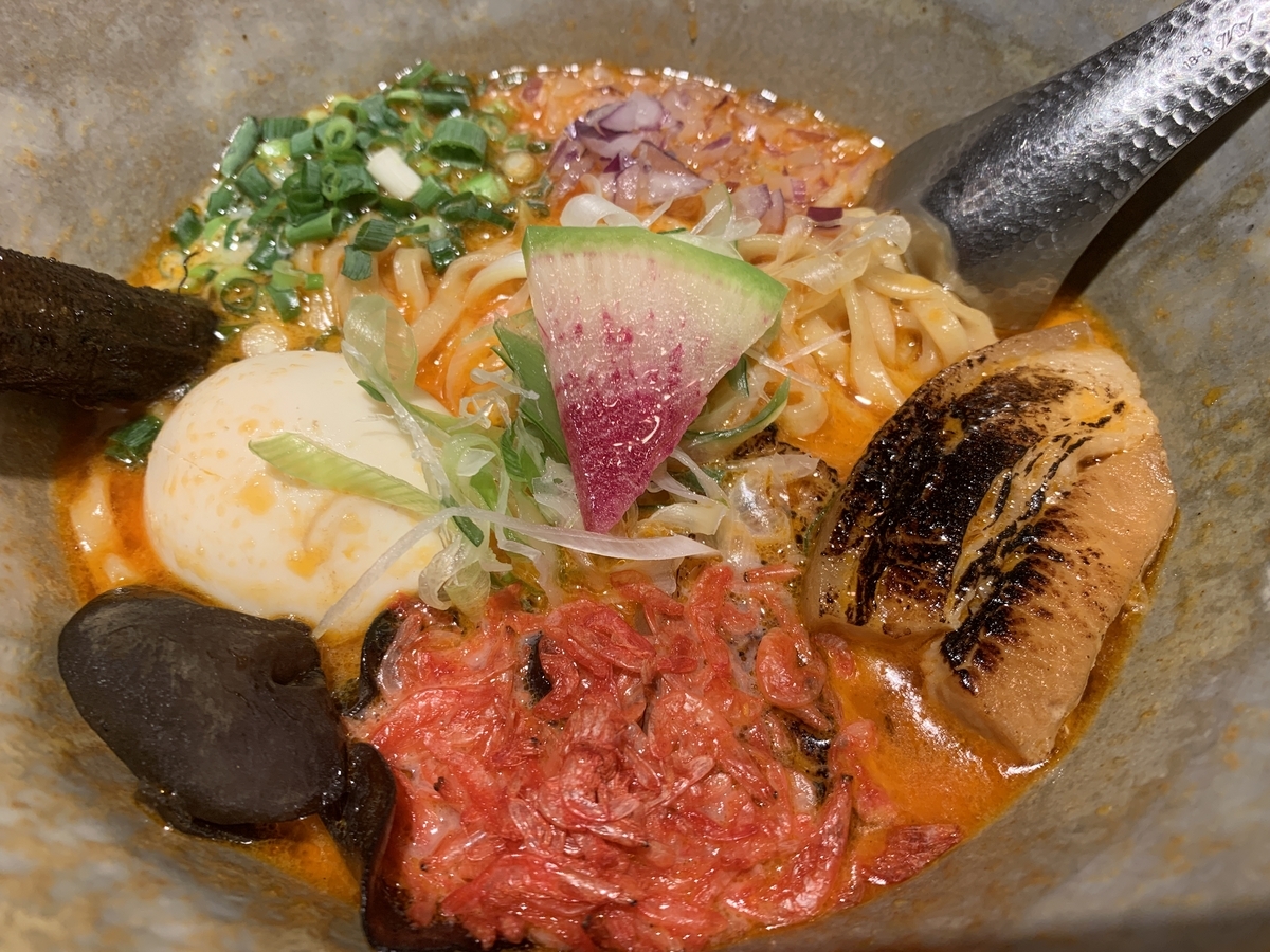 個人的に玉ねぎの清涼感、シャキシャキ食感と濃厚スープの組み合わせがツボでした。