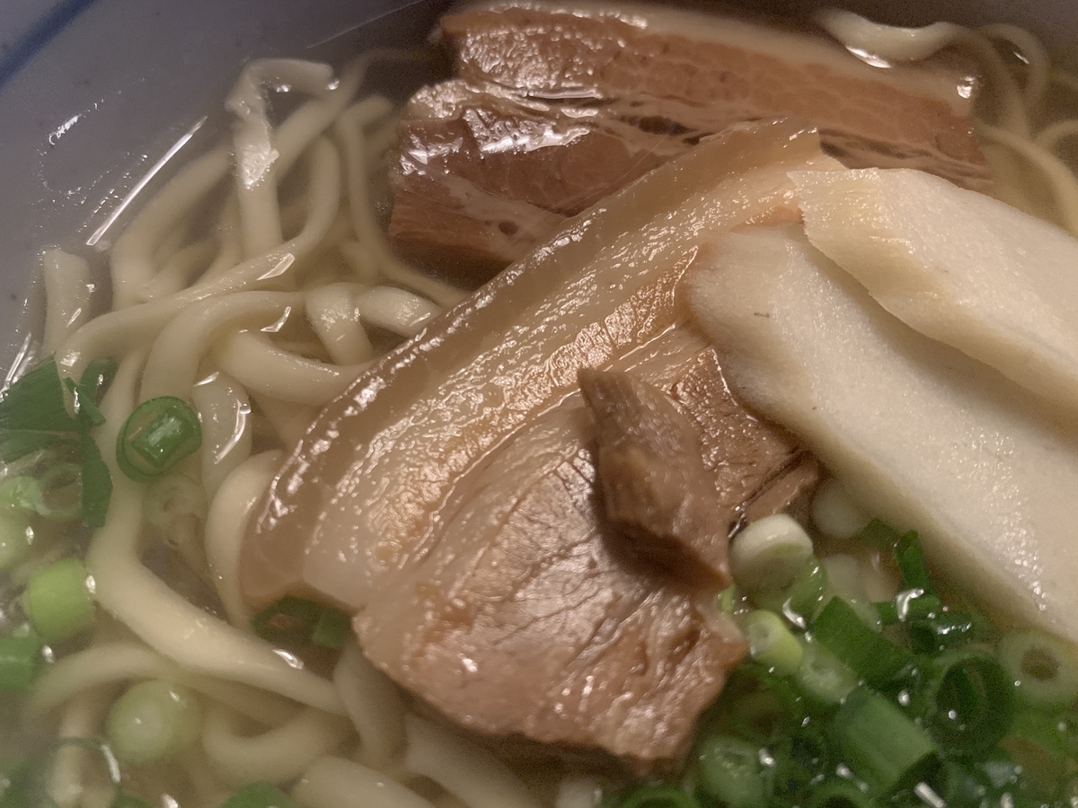 かまぼこに、ネギまで、本当に定番の沖縄そばといった感じです。