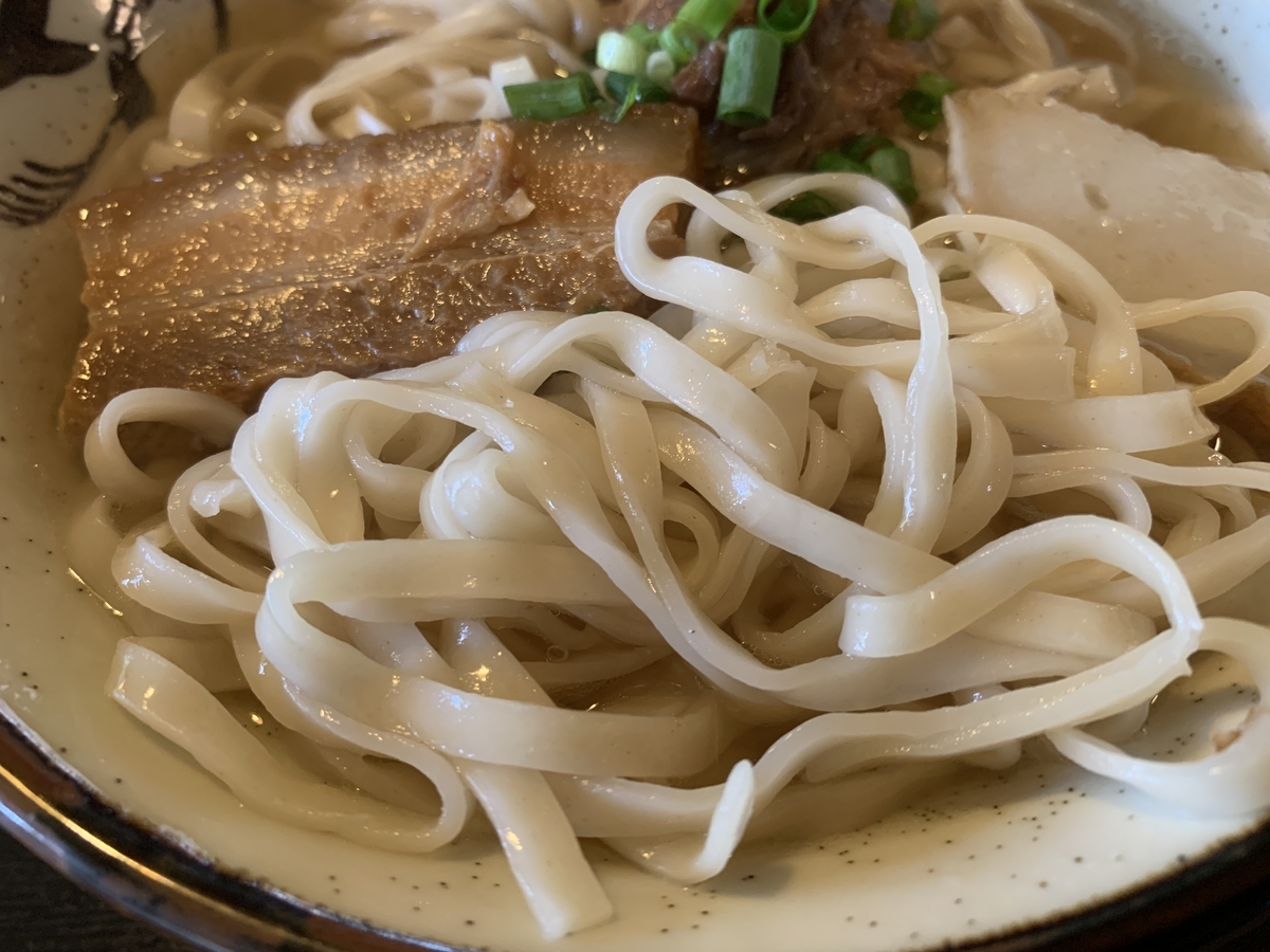 ツルっとした口当たりが特徴で、沖縄そばでもほかにないオリジナルな麺。