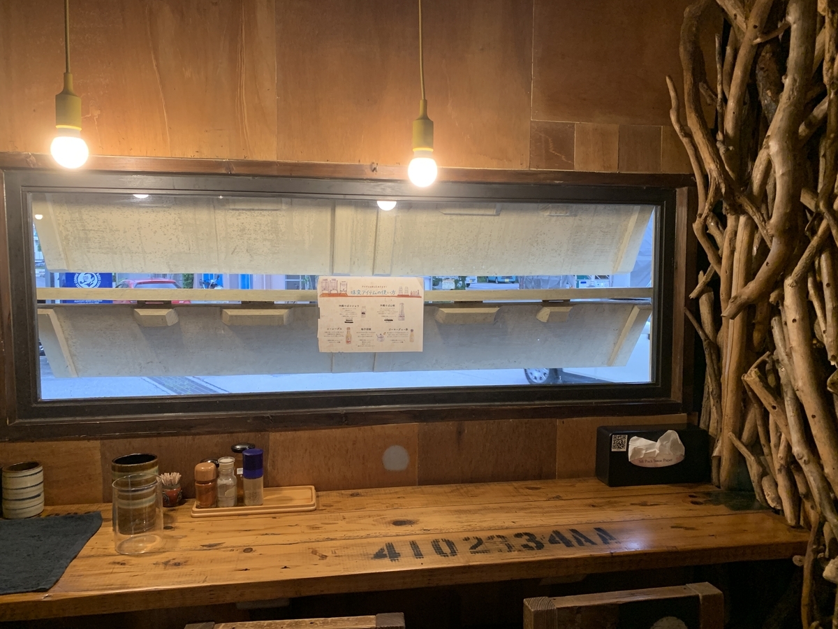 席は、厨房前と窓側のカウンター席、数人掛けのテーブル席があります。