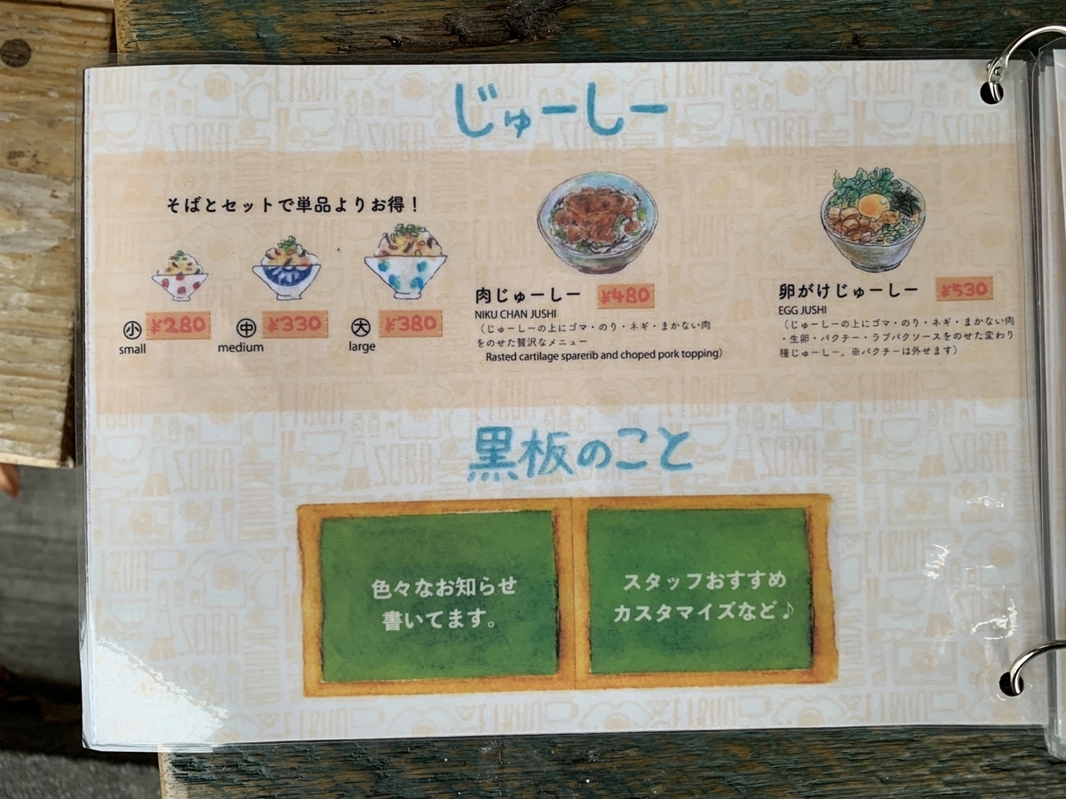 okinawasoba.hatenablog.comベースのしっかりとした沖縄そばに加えて、アレンジ系のそばも人気で特に「特製冷やしジュレダレぶっかけまぜそば」は代表作。