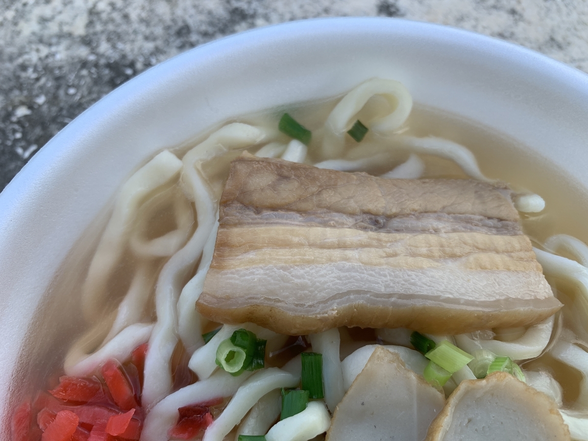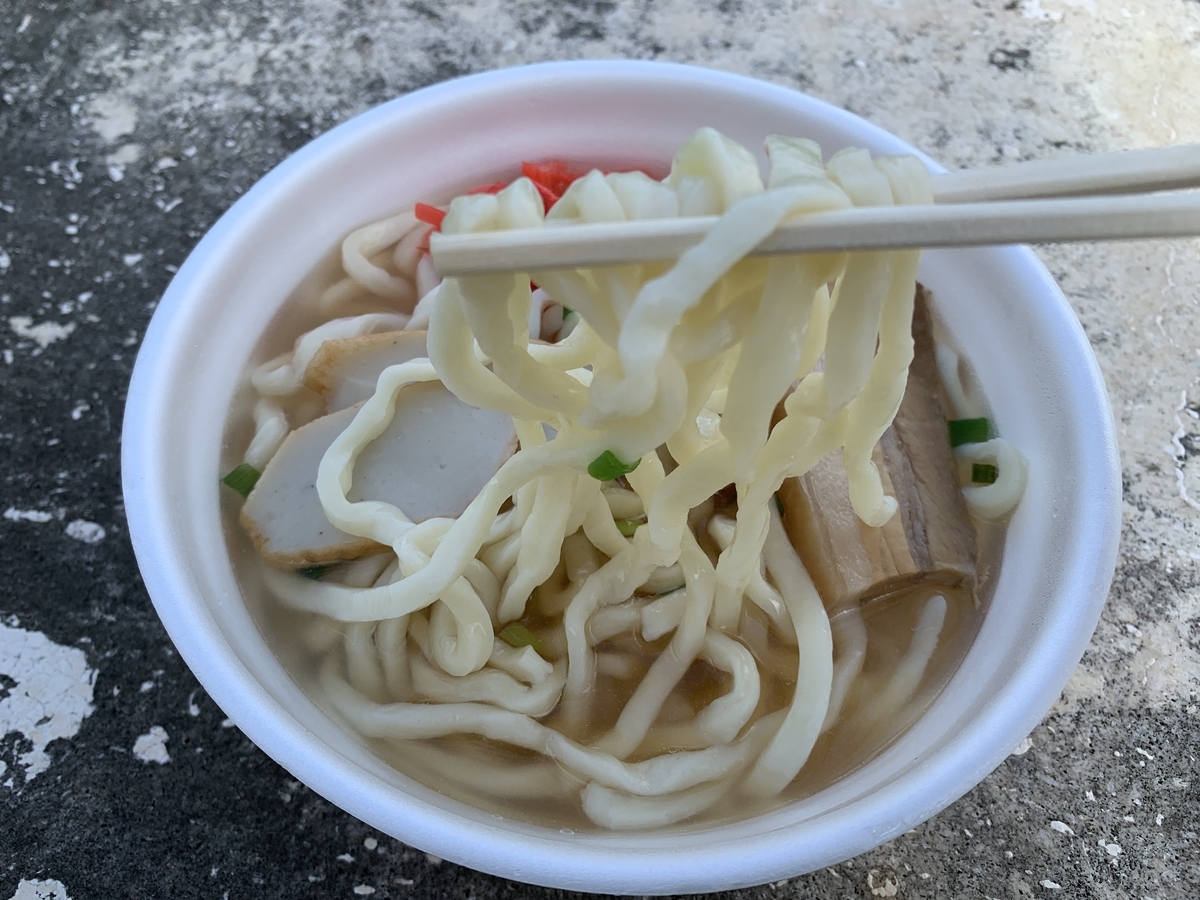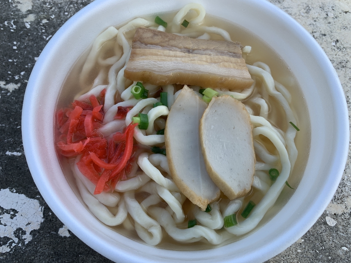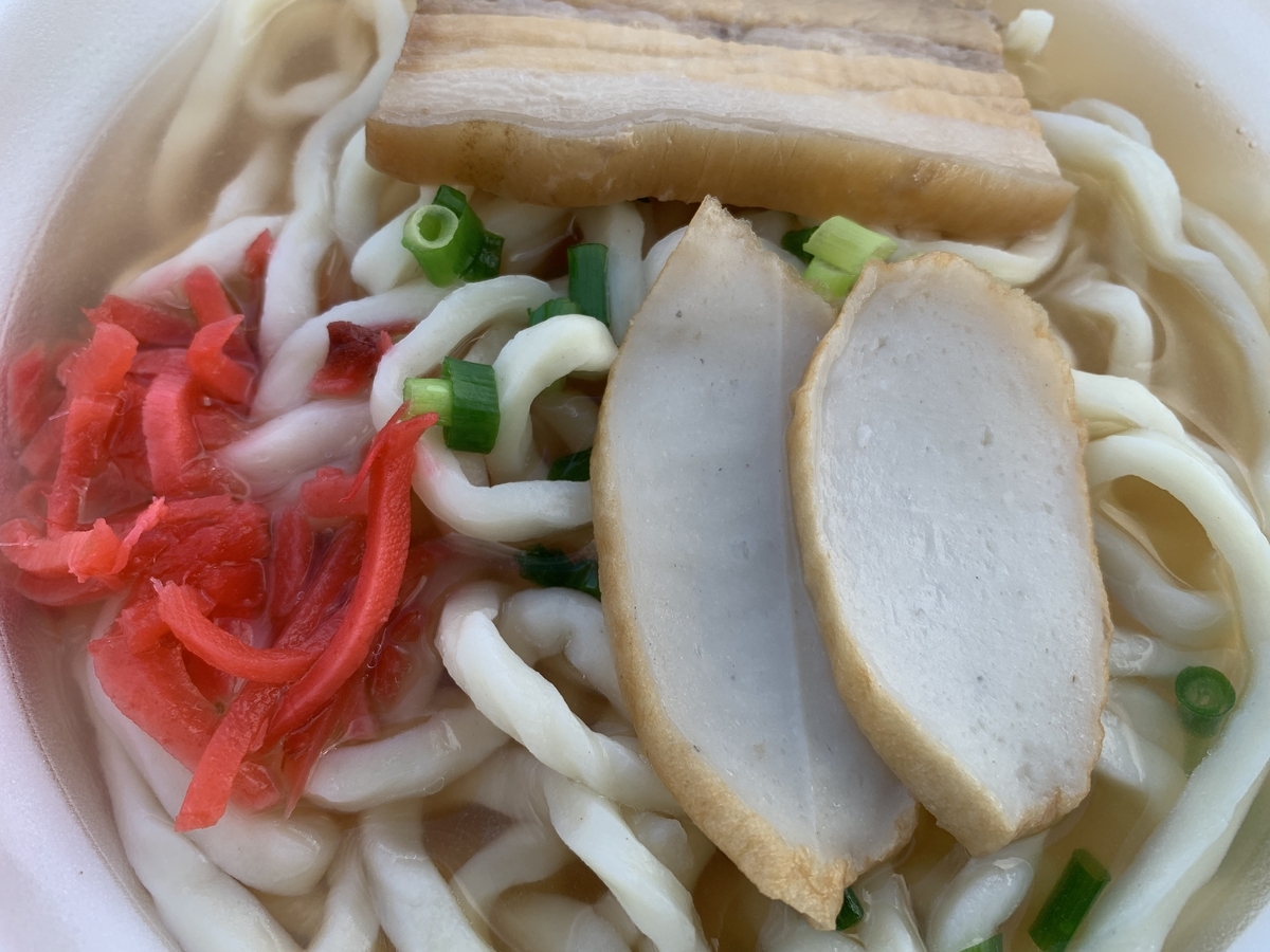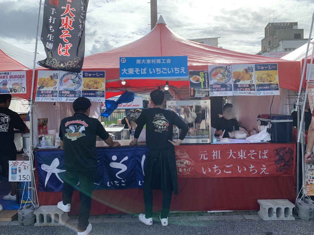 先日、奥武山公園で開催された「沖縄の産業まつり」で、なかなか食べる機会のない南大東村『いちごいちえ』の大東そばを食べることができました。