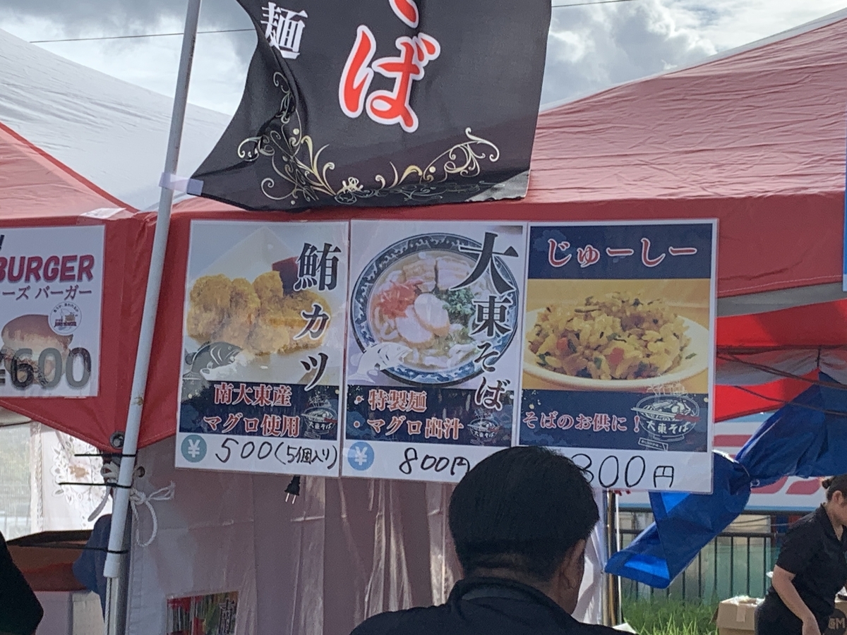 大東そばをはじめ、名物の「大東寿司」、南大東産の鮪を使用した鮪カツ、じゅーしーが販売されています。