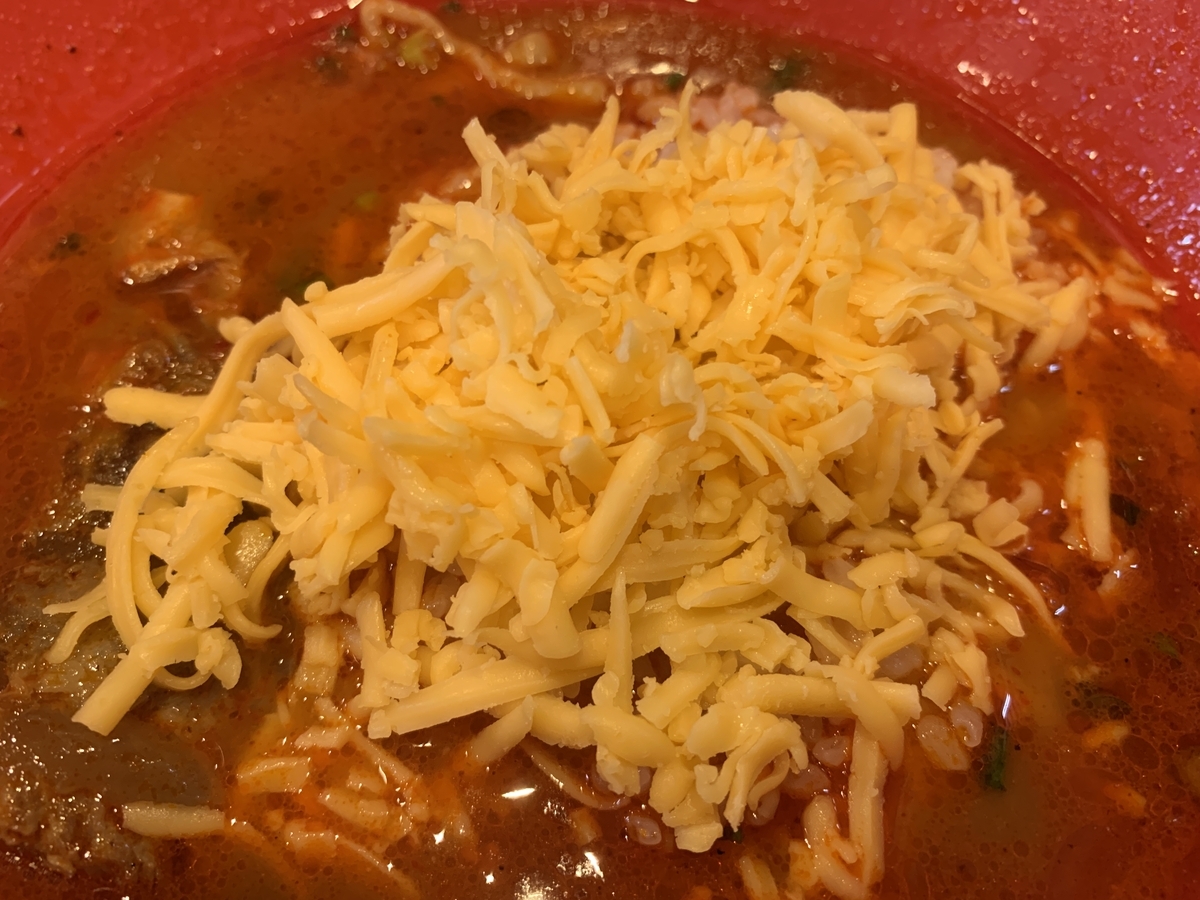 お薦めなのが、後半、ライス、チーズと合わせてリゾット風に食べるやり方。